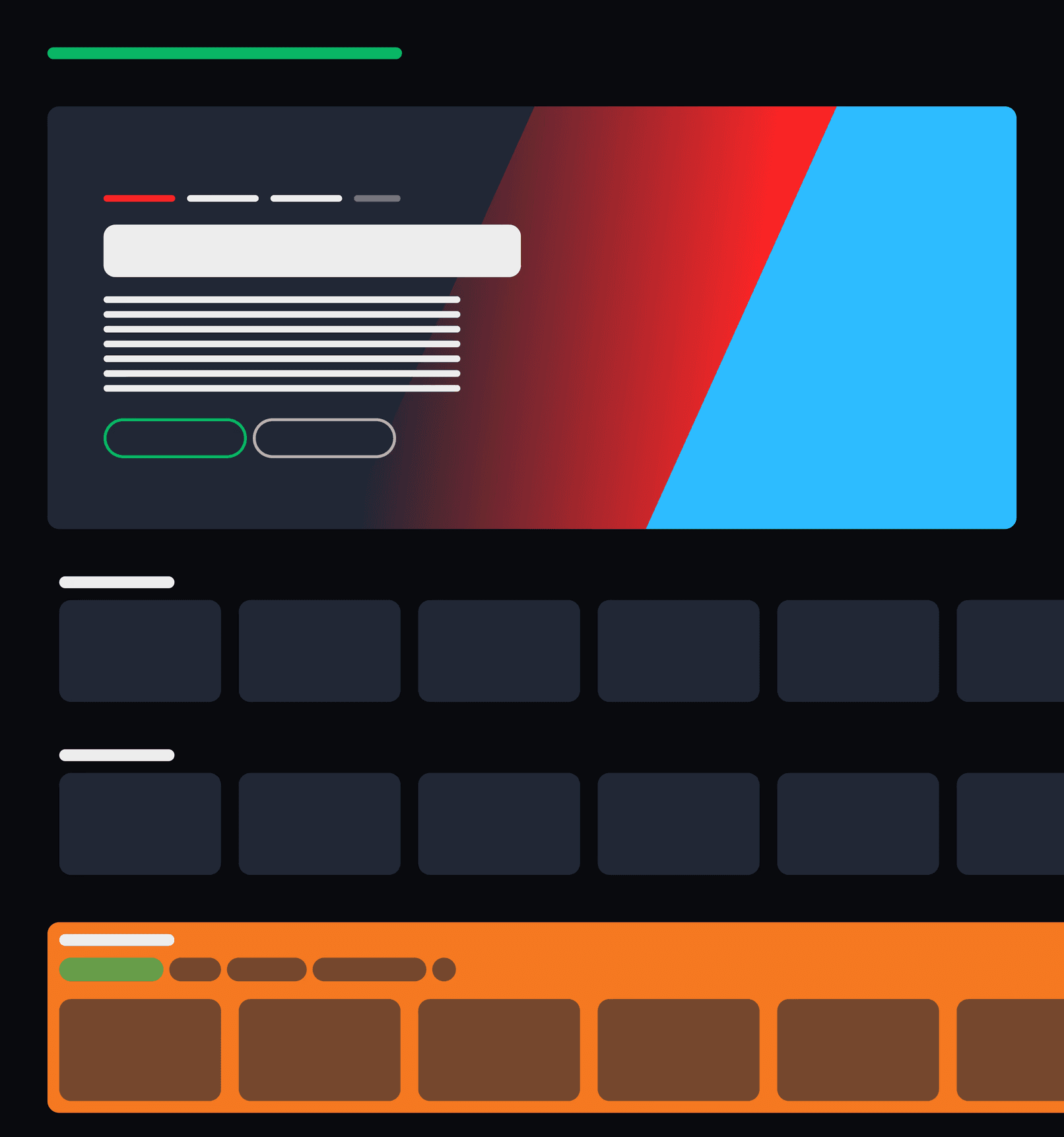 I joined Kayo as part of Thoughtworks during the acquisition by DAZN. We joined the team as design support. Prior to my joining Kayo had recently undergone a dramatic redesign for mobile, and they needed more help to create and polish design assets and rollout a similar brand update for both TV and web.