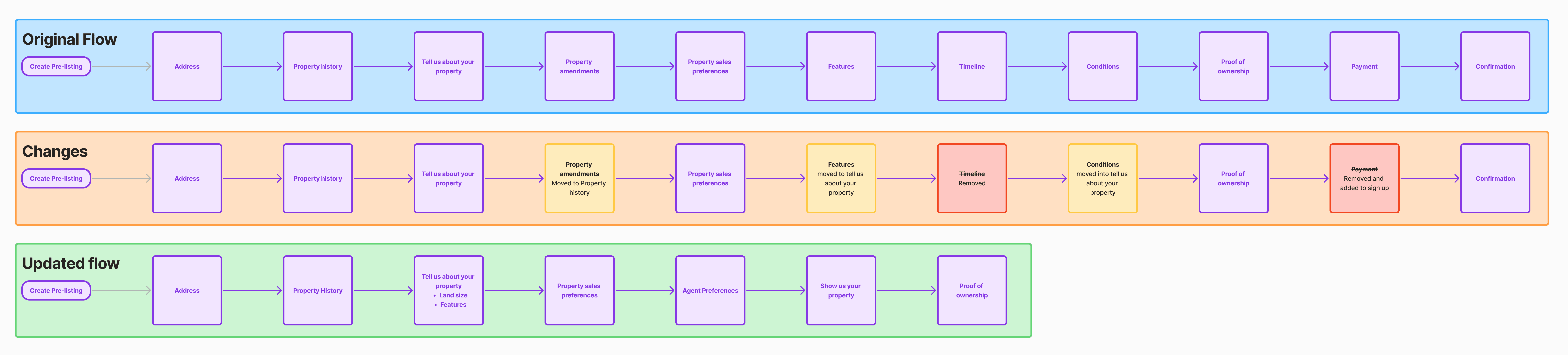 Reduced property listing flow from 12 steps to 7 through iterative testing and refinement.