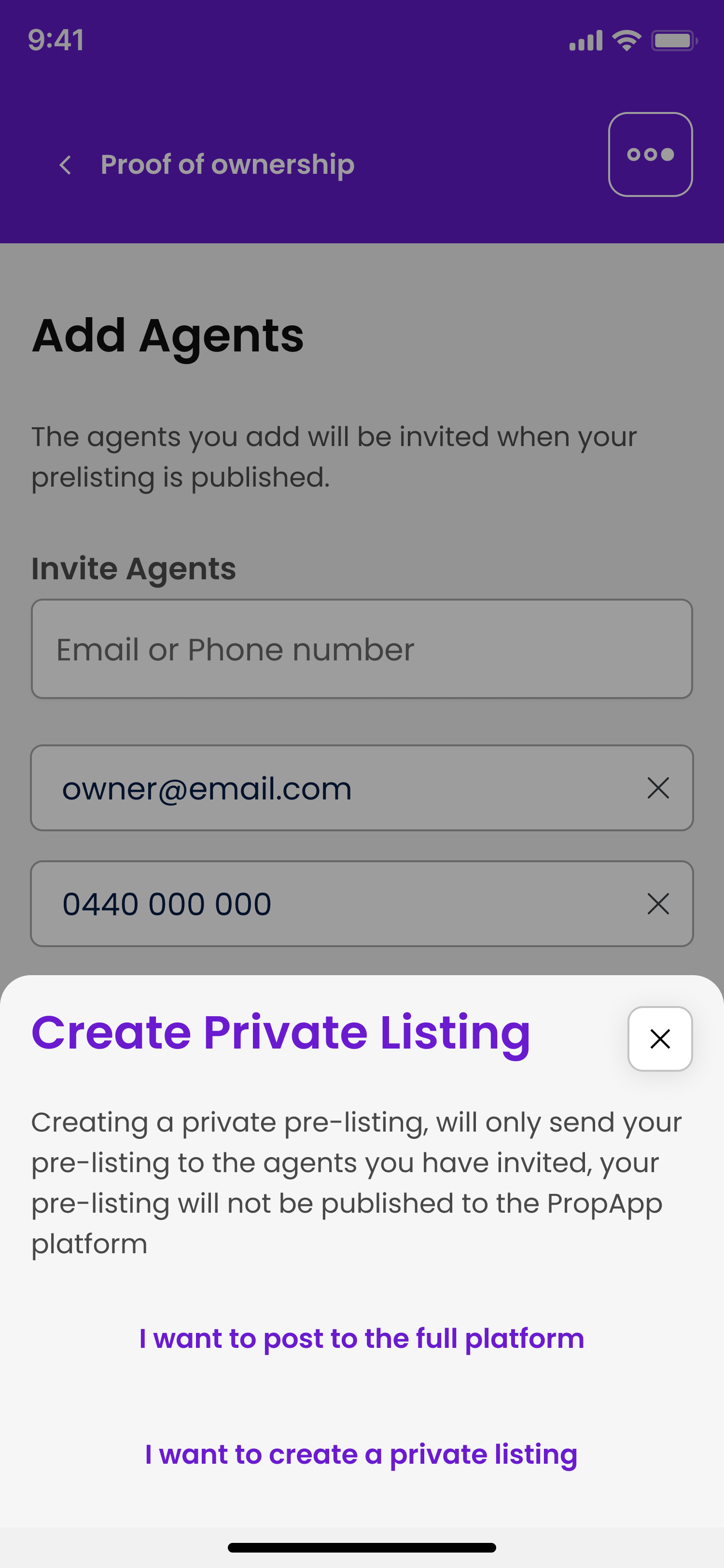 It was my recommendation to split the app into two parts; an app solely for homeowners keeping the name PropApp and a second app called ProspX for Agents. Looking at how other two sided market places operated they would have an app for the buys and the providers. This is because the purpose of each app was different even if they interacted with the same information.